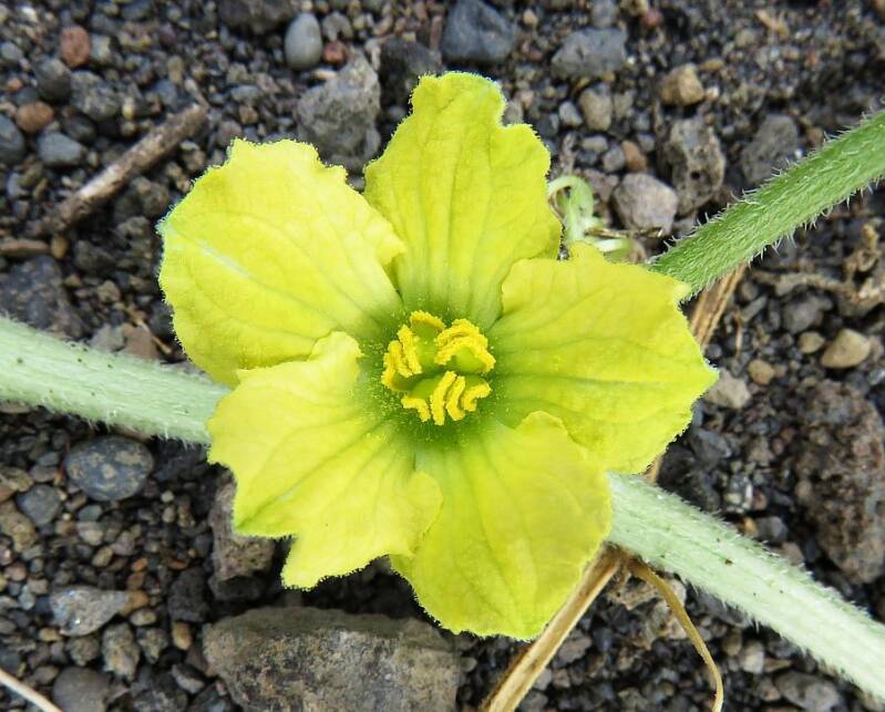 Nederlandse naam: Bitterappel, Kolokwint, Kwintappel, of Wijnstok van SodomWetenschappelijke naam: Citrullus colocynthisEngelse naam: Bitter apple, Bitter cucumber or Vine of SodomGefotografeerd: La Palma, Puerto de Naos 29-11-2016