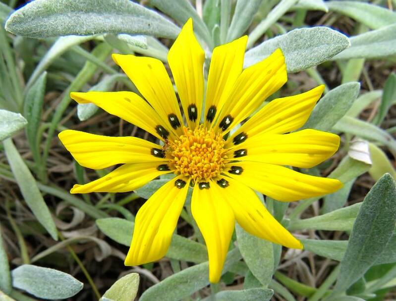 Nederlandse naam: MiddaggoudWetenschappelijke naam: Gazania rigensEngelse naam: Treasure flowerGefotografeerd: La Palma, La Puerto de Tazacorte 25-11-2016Opmerking: Plant komt oorspronkelijk uit Zuid Afrika