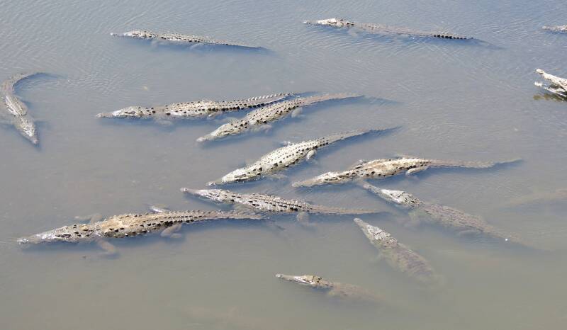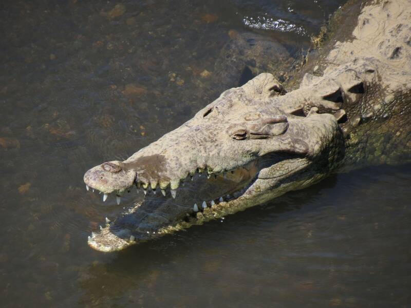 Nederlandse naam: Amerikaanse krokodilWetenschappelijke naam: Crocodylus acutusEngelse naam: American crocodileGefotografeerd: Krokodillenbrug Tarcoles Costa Rica maart 2013