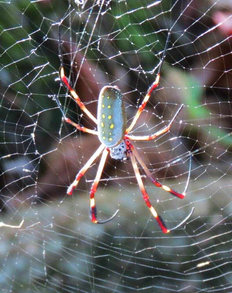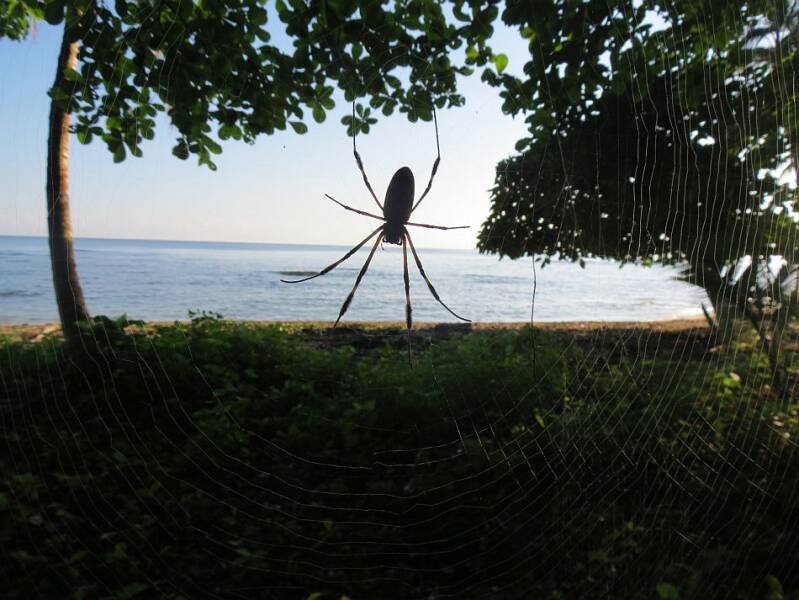 Nederlandse naam: Gouden zijdespinWetenschappelijke naam: Nephila clavipesEngelse naam: Golden silk orb-weaverGefotografeerd: Costa Rica Puerto Viejo maart 2013