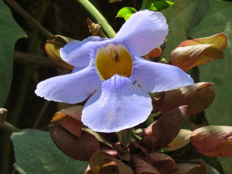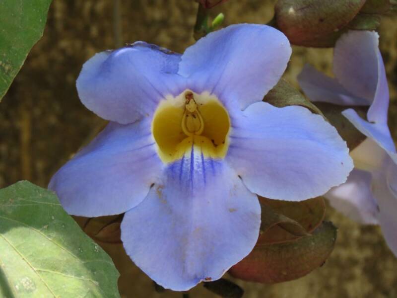 Nederlandse naam: Grootbloemige thunbergiaWetenschappelijke naam: Thunbergia grandifloraEngelse naam: Bengal trumpetGefotografeerd: Costa Rica Dominical maart 2013Opmerking: Deze plant komt van nature voor in India, Thailand en Zuid China
