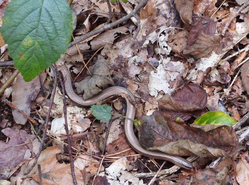 Nederlandse naam: HazelwormWetenschappelijke naam: Anguis fragilisEngelse naam: slowwormGefotografeerd: Duitsland Hünxe-Drevenack 13-09-2024
