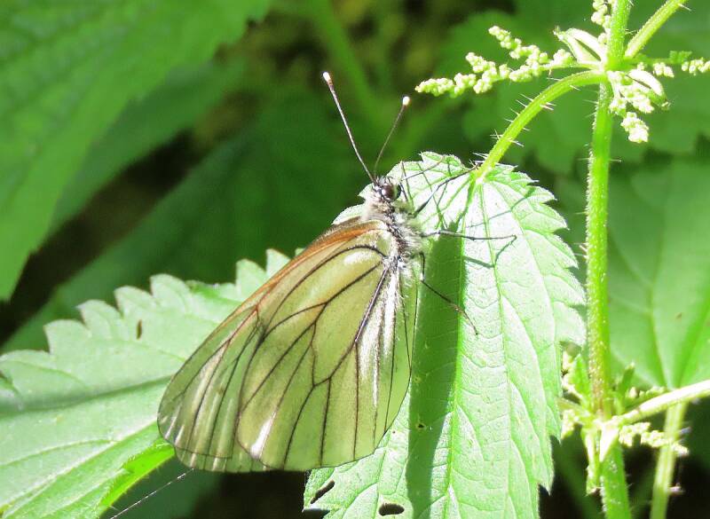 Nederlandse naam: Groot geaderd witjeWetenschappelijke naam: Aporia crataegiEngelse naam: Black-veined whiteGefotografeerd: Duitsland Eifel Wollenberg 25-06-2019
