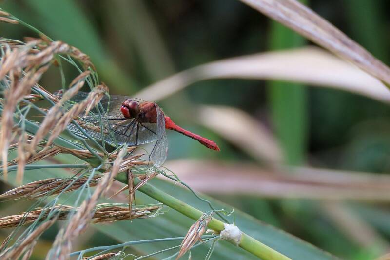 Nederlandse naam: Bloedrode heidelibel MANWetenschappelijke naam: Sympetrum sanguineumEngelse naam: Ruddy darterGefotografeerd: Frankrijk Dordogne Périgord Coly Camping La Grande Prade 26-09-2021
