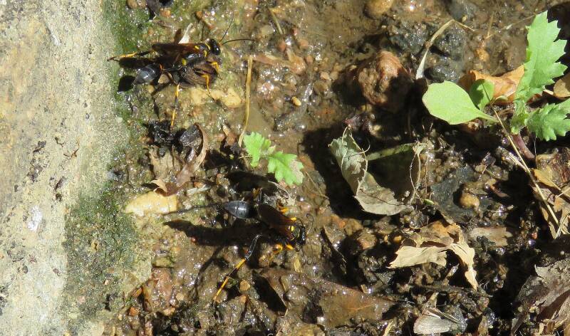 Nederlandse naam: Zwart en gele modderlasserWetenschappelijke naam: Sceliphron caementariumEngelse naam: Black and yellow mud dauberGefotografeerd: Frankrijk, Bourgogne, Le Gros Chigy 26-06-2018
