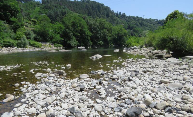 01-07-2018 De Ardèche bij Vals-les-Bains vanaf de brug bij Labégude