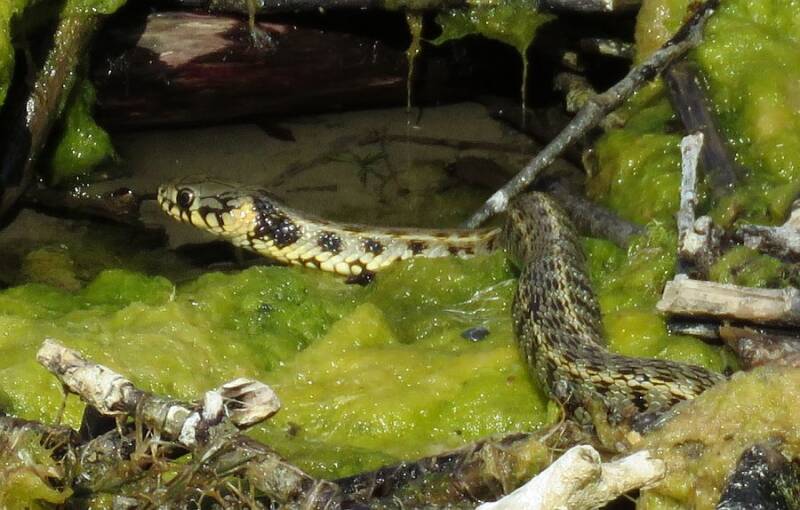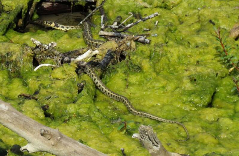 Nederlandse naam: RinslangWetenschappelijke naam: Natrix natrix persaEngelse naam: Grass snakeGefotografeerd: Macedonië Bij de uitloop van de Daljanrivier in het meer van Ohrid 23-09-2015