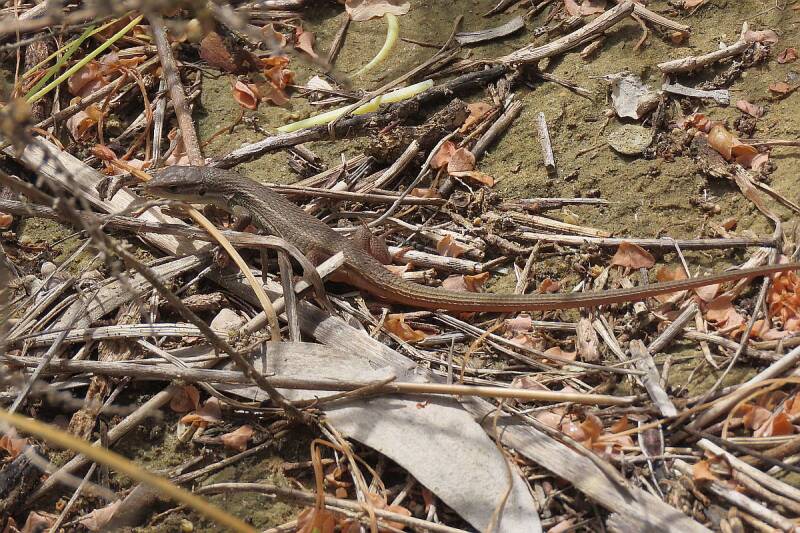 Nederlandse naam: Spaanse zandloperWetenschappelijke naam: Psammodromus hispanicusEngelse naam: Spanish psammodromusGefotografeerd: Portugal Cabanas 18-03-2018