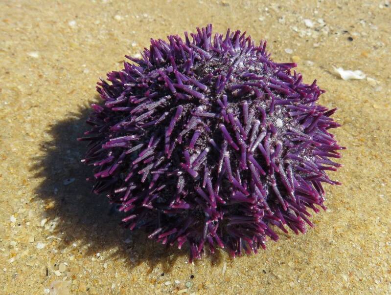 Nederlandse naam: ZeeëgelWetenschappelijke naam:Engelse naam: Sea urchinGefotografeerd: Portugal Monte Gordo strand 12-03-2016