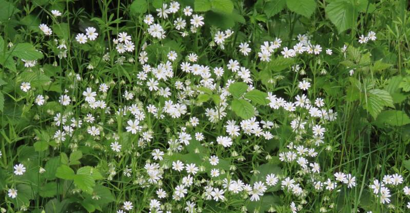 Het was er rijk aan bloeiende planten en prachtig om te zien waren de grote hoeveelheden Akkerhoornbloemen.