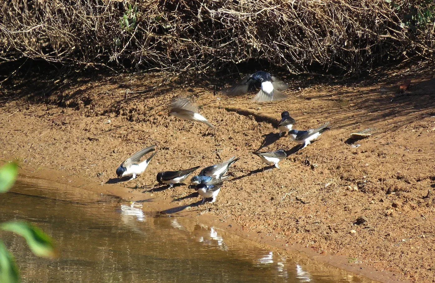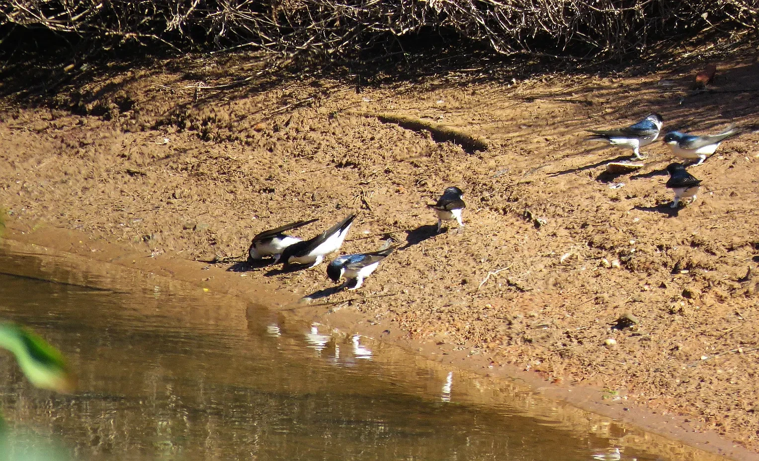 24-03-2016 Huiszwaluwen verzamelen klei om nestjes te maken