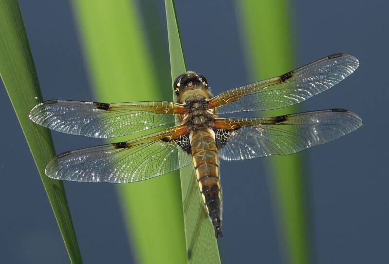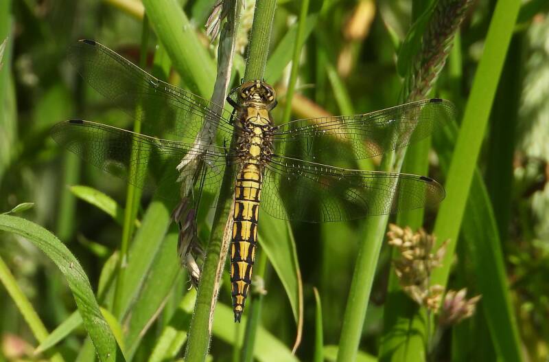 04-06-2023 Mooi zonnig weer en niet te veel wind. Ideaal om te kijken of er libellen waren en die waren er dan ook volop. Vooral veel Viervlekken die samen met Gewone oeverlibellen laag over het water scheerden en achter elkaar aan zaten. Soms ging één zitten zodat ik ze kon fotograferen.
