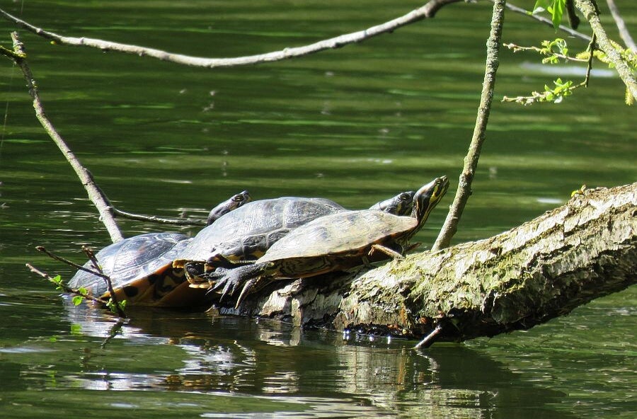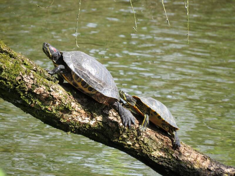 Opmerking: Weet niet zeker of de twee groten ook de Roodwangschildpad zijn omdat de rode wang ontbreekt, kunnen ook Geelbuikschildpadden zijn (Trachemys scripta scripta)