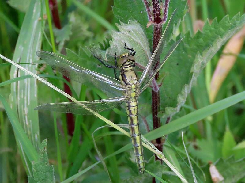 Opmerking: Jong exemplaar kort geleden uitgeslopen te zien aan de glimmende vleugels en nog bleek van kleur. Exemplaar moet drogen en op kleur komen voordat het kan gaan vliegen.