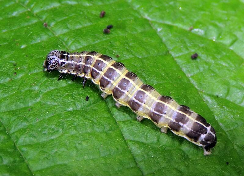 Nederlandse naam: Kleine voorjaarsuil rupsWetenschappelijke naam: Orthosia crudaEngelse naam: Small QuakerGefotografeerd: Delft Bieslandse bos 13-05-2020Opmerking: De Kleine voorjaarsuil is een nachtvlinder