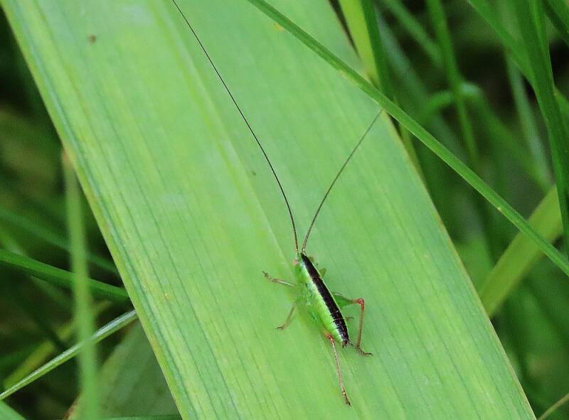 Nederlandse naam: Gewoon spitskopje nimfWetenschappelijke naam: Conocephalus dorsalisGefotografeerd: Delft Westplantsoen 11-06-2019