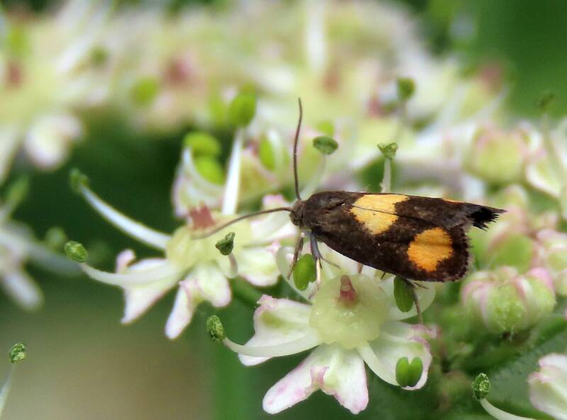 Nederlandse naam: Oranje dwergbladrollerWetenschappelijke naam: Pammene auranaEngelse naam: Orange-spot PiercerGefotografeerd: Bieslandse Bos 29-07-2020