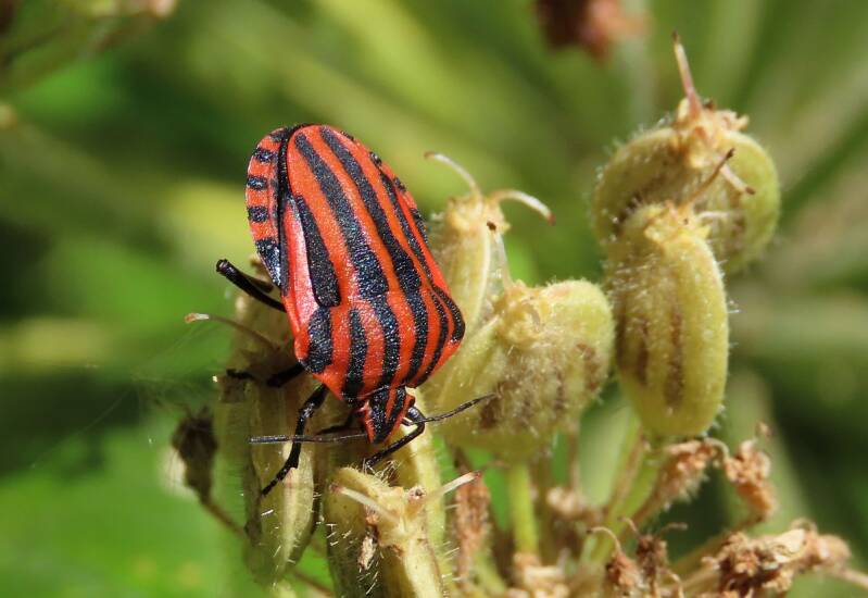Nederlandse naam: PyamaschildwantsWetenschappelijke naam: Graphosoma lineatumEngelse naam: Striped bugGefotografeerd: Bieslandse Bos 29-05-2020