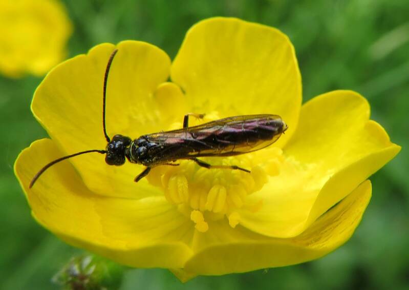 Nederlandse naam: GraanhalmwespWetenschappelijke naam: Cephus pygmaeusEngelse naam: European wheat stem sawflyGefotografeerd: Delftse Hout 21-05-2018