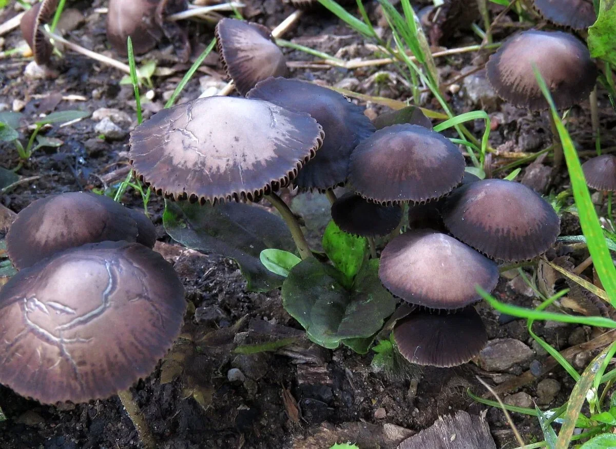 Nederlandse naam: FranjehoedWetenschappelijke naam: Psathyrella spEngelse naam: Weeping widowGefotografeerd: Bieslandse Bos 13-09-2019Opmerking: Paddenstoeltjes naaste het pad waar ook spaanders hout in de grond zaten