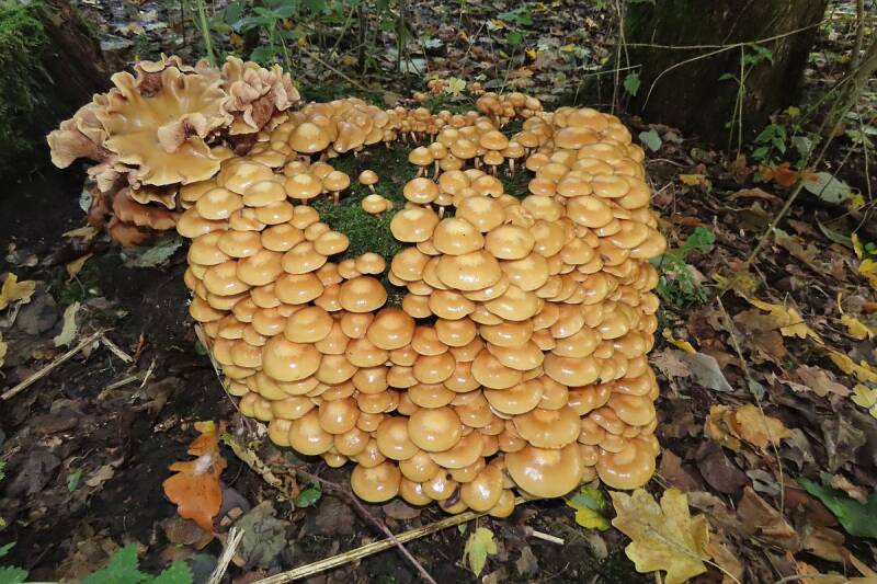 Opmerking: Boomstronk zat vol met Stobbezwammetjes en een groepen Bruine anijszwam