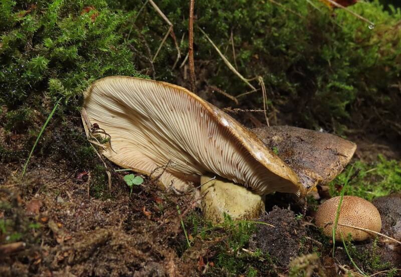 Nederlandse naam: Zwartgroene melkzwamWetenschappelijke naam: Lactarius necatorEngelse naam: Ugly Milk-capGefotografeerd: Den Ham Zandstuve 29-09-2020Opmerking: Determinatie niet zeker 59% met Obsidentify