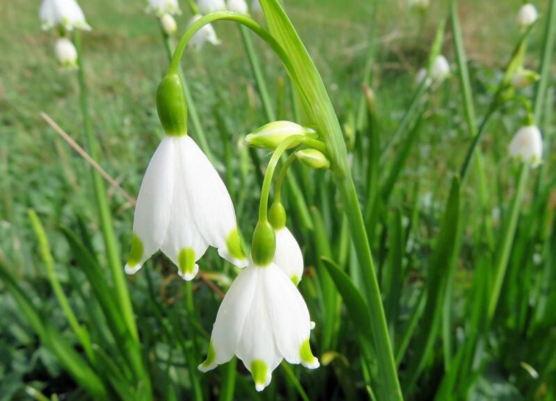 Nederlandse naam: ZomerklokjeWetenschappelijke naam: Leucojum aestivumEngelse naam: Summer snowflakeGefotografeerd: Delftse Hout Heemtuin 18-04-2018Opmerking: Is aangeplant, Zomerklokje is een zeldzame plant in Nederland