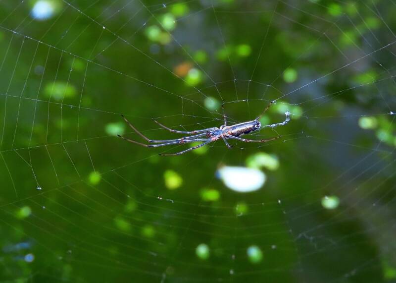 Nederlandse naam: TrekspinWetenschappelijke naam: Tetragnatha spEngelse naam: Long-jawed orb weaverGefotografeerd: Achtertuin 16-05-2020
