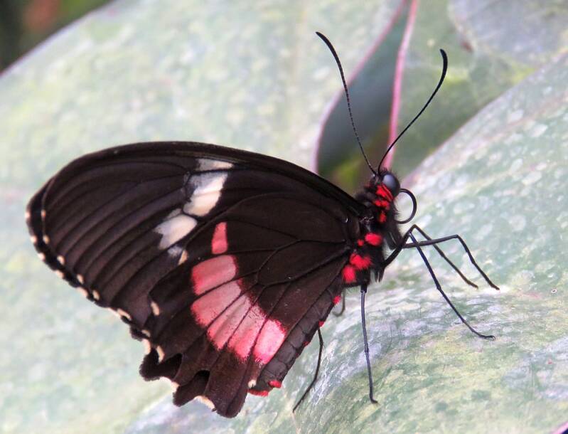 Nederlandse naam: Pagevlider ParidesWetenschappelijke naam: Parides iphidamasEngelse naam: CattleheartGefotografeerd: Vlinders aan de Vliet Leidschendam 28-02-2018Opmerking: Leefgebied Mexico tot Peru