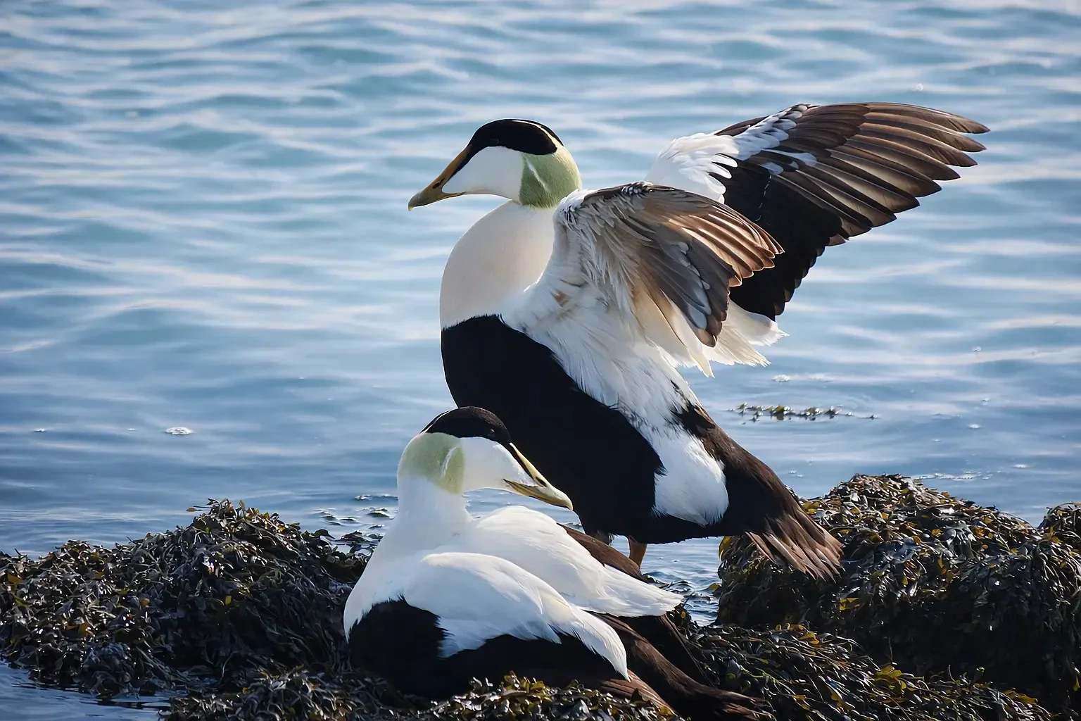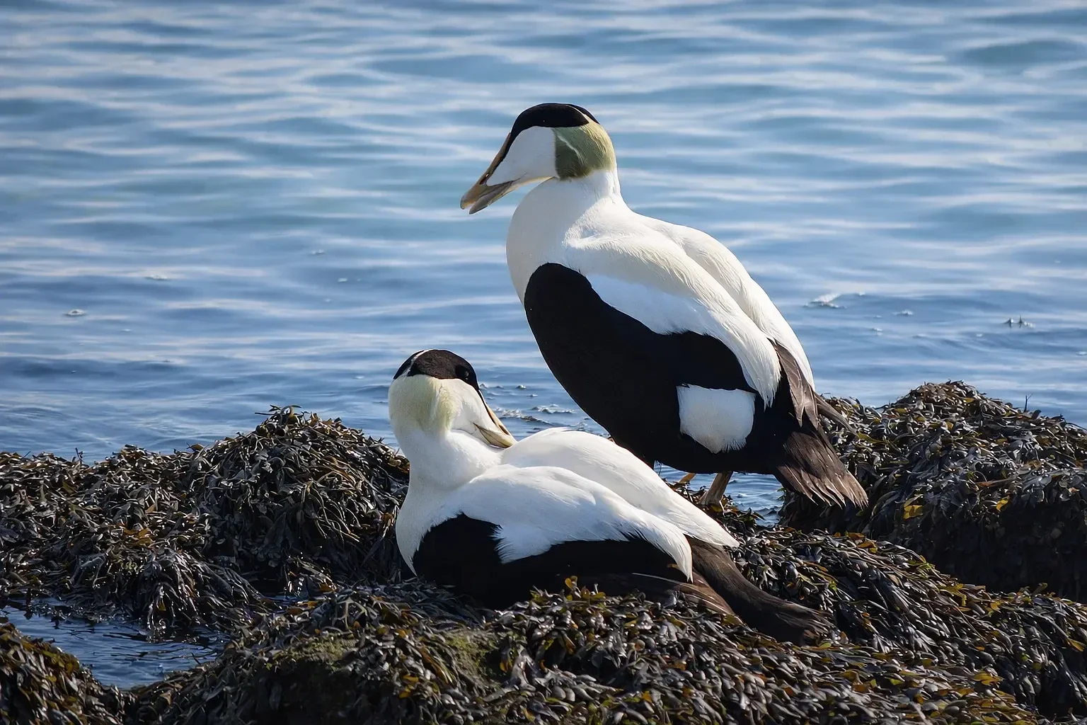 Nederlandse naam: Eidereend mannenWetenschappelijke naam: Somateria mollissimaEngelse naam: Common eiderGefotografeerd: Texel wadden kant 24-03-2022