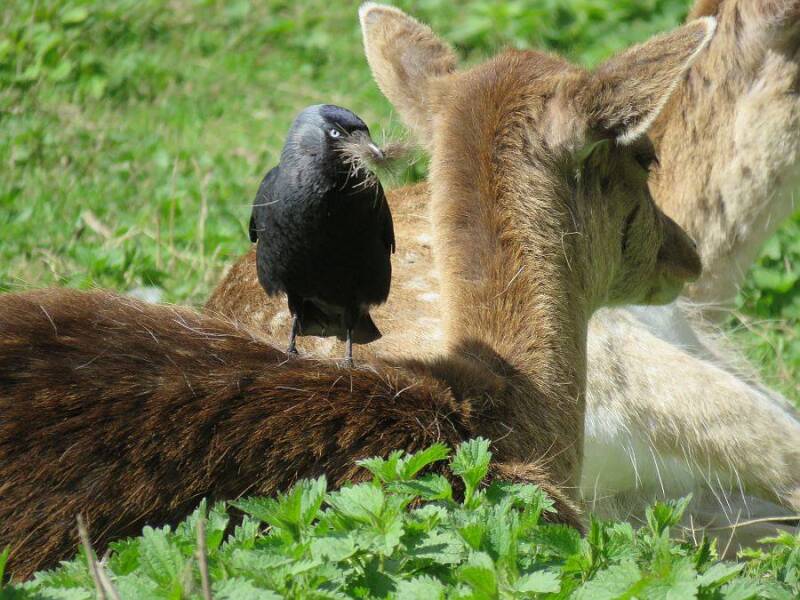 Nederlandse naam: Kauw verzameld nestmateriaal