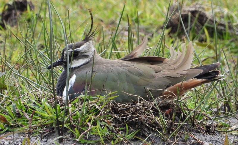 30-03-2021 Polder Biesland Korftlaan. Broedende Kievit met in haar directe omgeving een Tureluur. Wat dreiging van Kraaien waar de Kievit op af ging om ze te verjagen. Op afstand van het nest weer geland en als de kust weer veilig is neemt ze weer plaats op het nest.