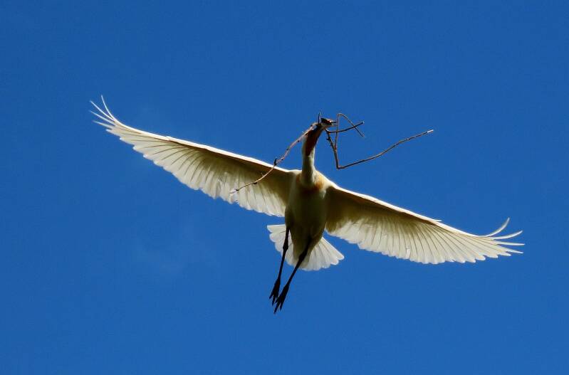 Opmerking: Terwijl andere koppels al volop bezig zijn met de verzorging van hun jongen zijn andere nog bezig met nestbouw.