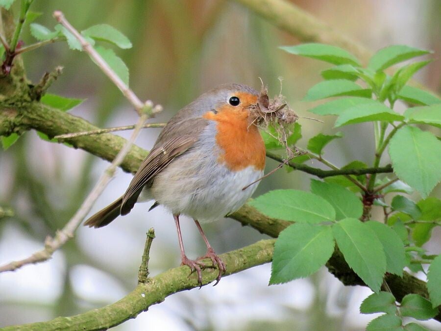 Nederlandse naam: Roodborst verzameld nestmateriaal