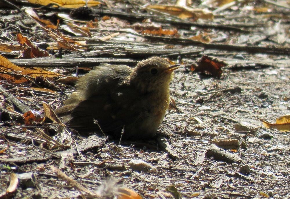Nederlandse naam: Roodborst jong neemt zonnebad