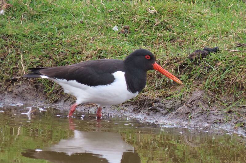 Nederlandse naam: Scholekster neemt een bad en zoekt voedsel