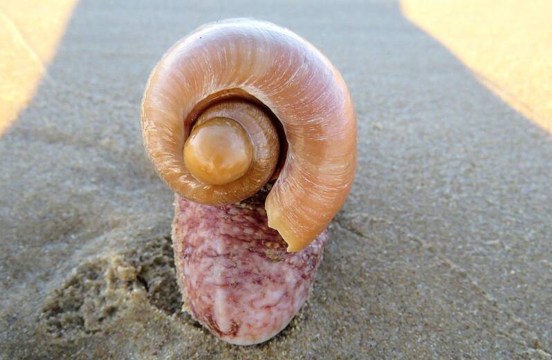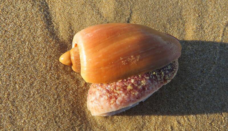Nederlandse naam: VolutaWetenschappelijke naam: Cymbium ollaEngelse naam: Algarve voluteGefotografeerd: Portugal Monte Gordo strand 13-03-2016