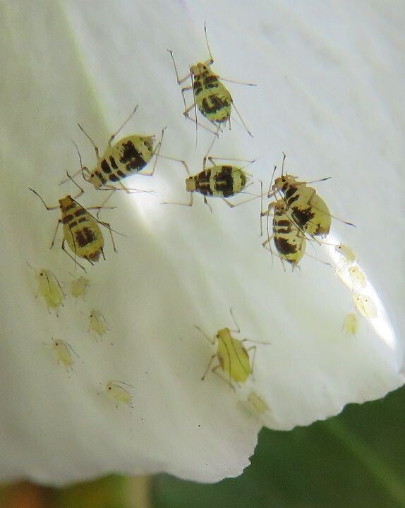 Nederlandse naam: Gevlekte bladluisWetenschappelijke naam: Aulacorthum circumflexumEngelse naam: Crescent-marked lily aphidGefotografeerd: Eigen tuin op de violen 17-04-2016